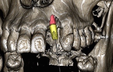 Aujourd’hui des logiciels spécifiques permettent de simuler le projet implantaire, tant pour la phase chirurgicale (pose d’un implant) que prothétique ( visualisation du pilier et de la couronne implantaires). Tous les éléments anatomiques (sinus, nerf…) qui vont se trouver à proximité du site implantaire vont être visualisés. Ces logiciels rendent donc plus sûre la pose de l’implant.